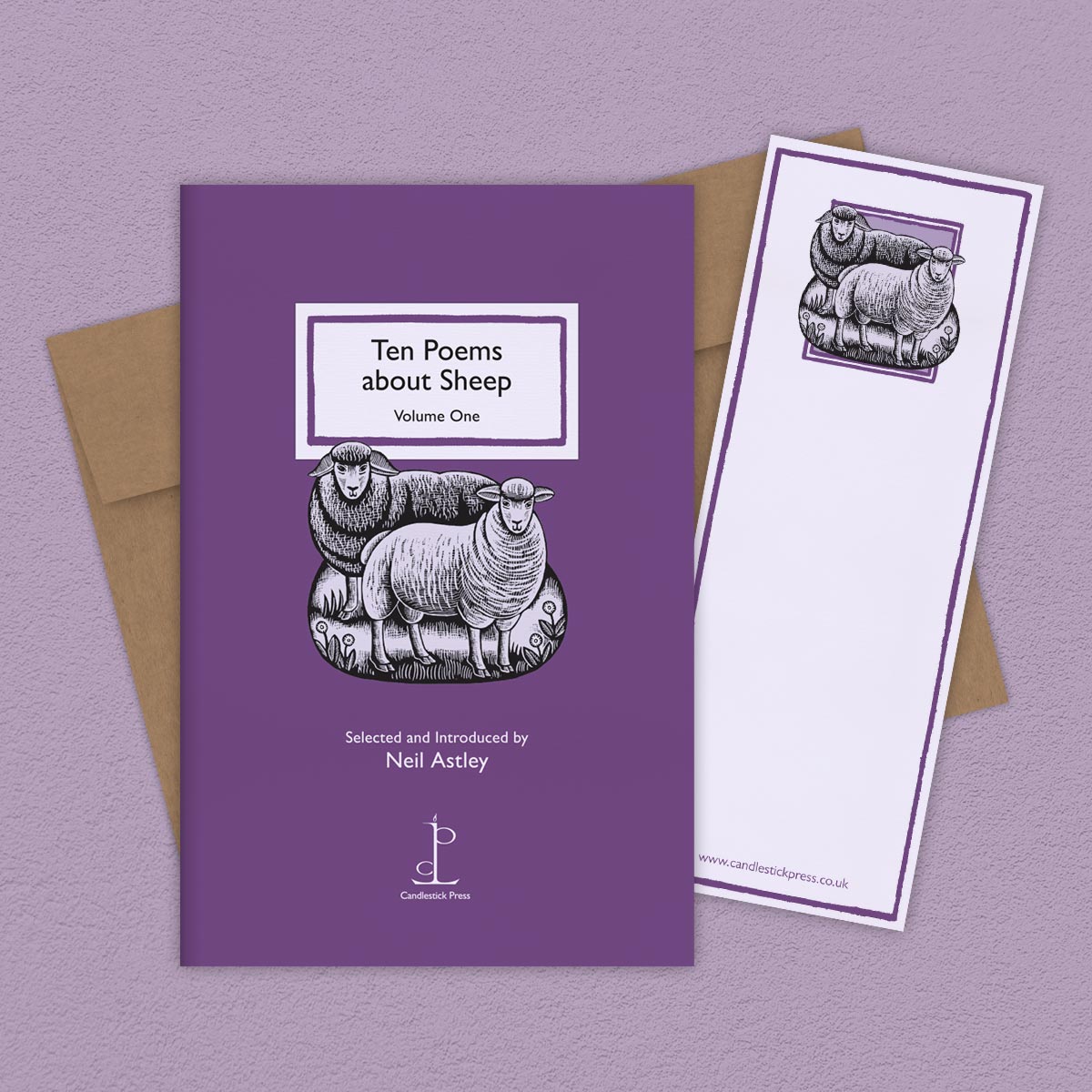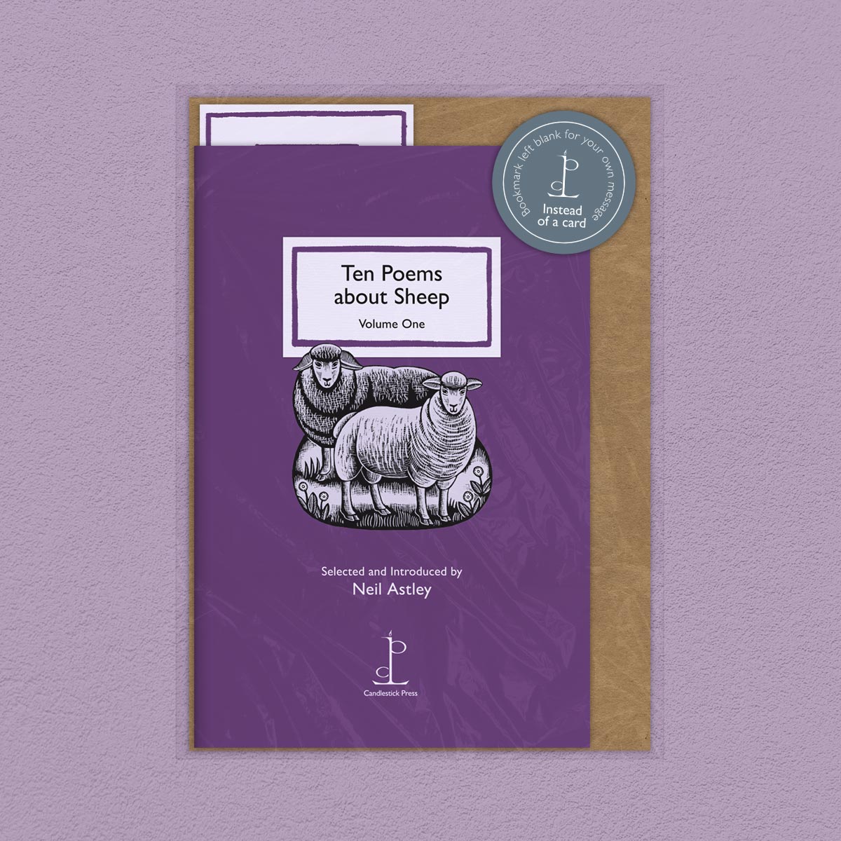 Pack image of the Ten Poems about Sheep: Volume One poetry pamphlet on a decorative background